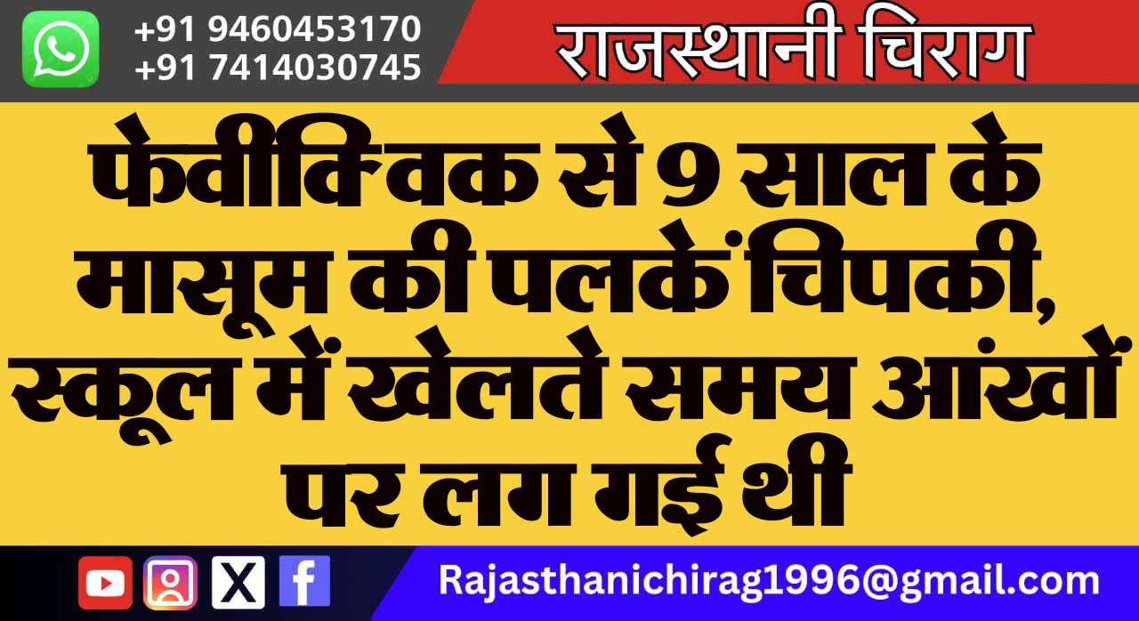 फेवीक्विक से 9 साल के मासूम की पलकें चिपकी, स्कूल में खेलते समय आंखों पर लग गई थी