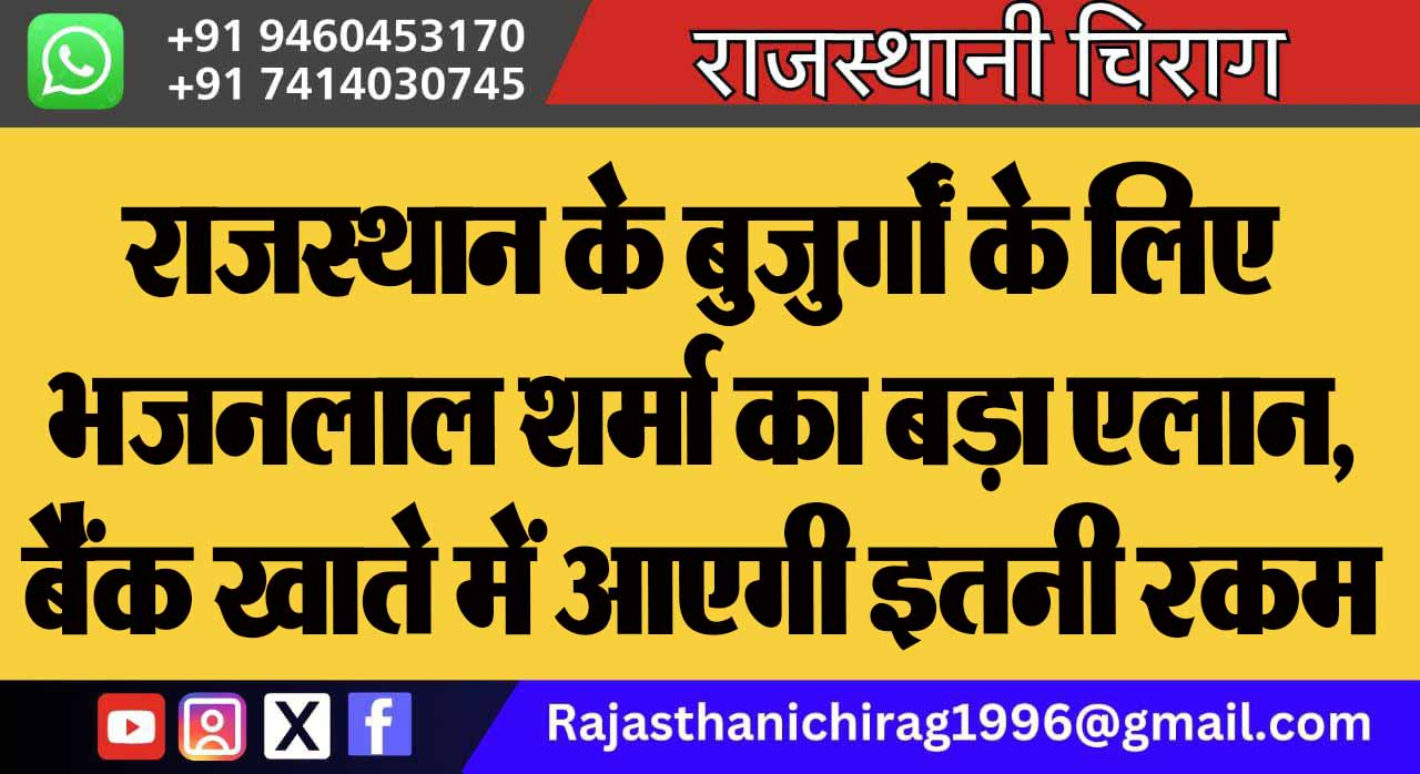 राजस्थान के बुजुर्गों के लिए भजनलाल शर्मा का बड़ा एलान, बैंक खाते में आएगी इतनी रकम