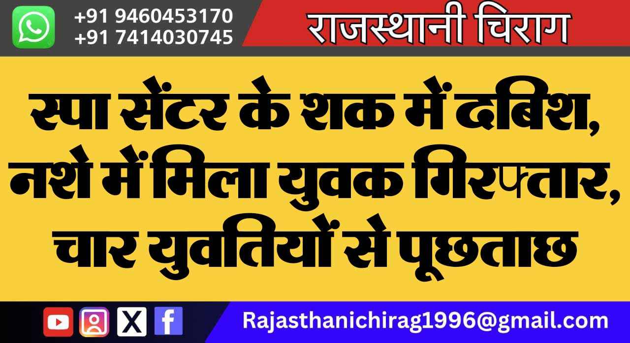 स्पा सेंटर के शक में दबिश, नशे में मिला युवक गिरफ्तार, चार युवतियों से पूछताछ