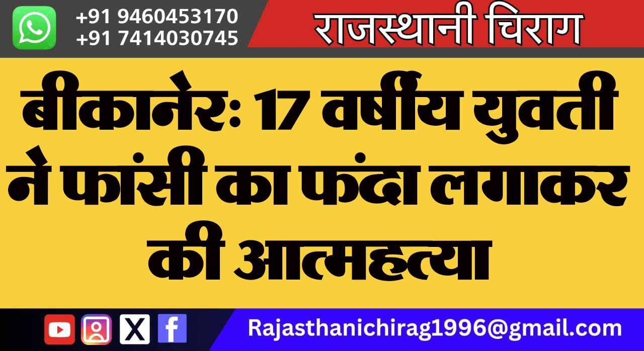 बीकानेर: 17 वर्षीय युवती ने फांसी का फंदा लगाकर की आत्महत्या