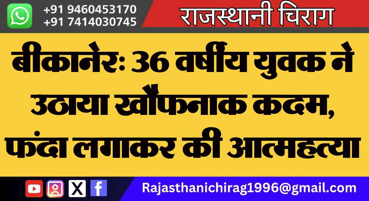 बीकानेर: 36 वर्षीय युवक ने उठाया खौफनाक कदम, फंदा लगाकर की आत्महत्या