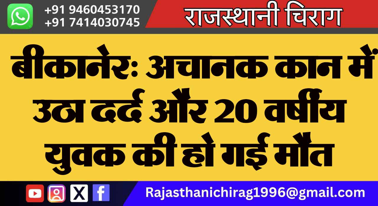 बीकानेर: अचानक कान में उठा दर्द और 20 वर्षीय युवक की हो गई मौत