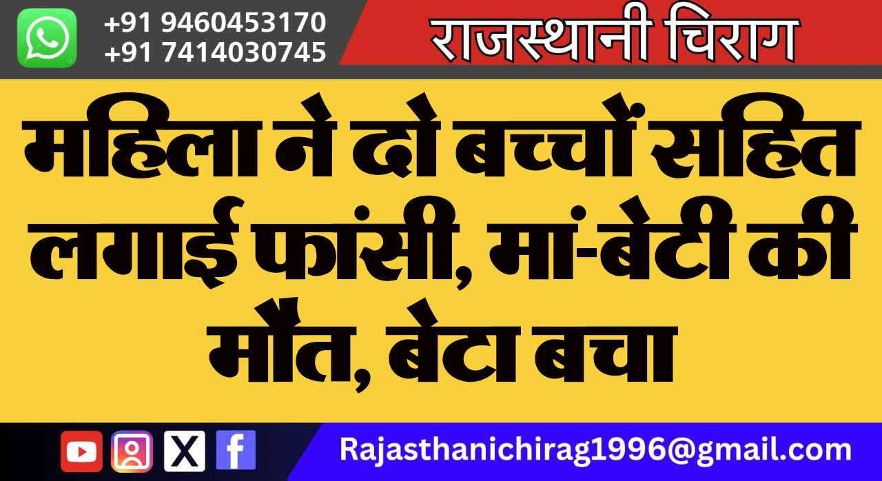महिला ने दो बच्चों सहित लगाई फांसी, मां-बेटी की मौत, बेटा बचा