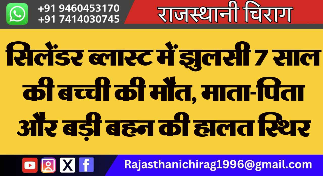 सिलेंडर ब्लास्ट में झुलसी 7 साल की बच्ची की मौत, माता-पिता और बड़ी बहन की हालत स्थिर