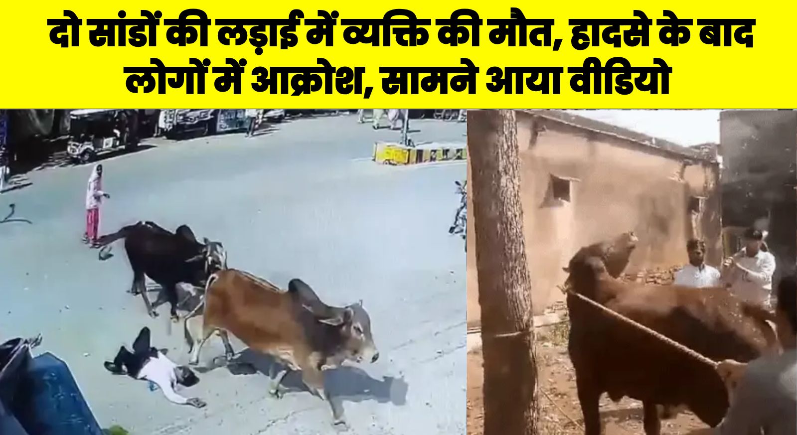 दो सांडों की लड़ाई में व्यक्ति की मौत, हादसे के बाद लोगों में आक्रोश, सामने आया वीडियो