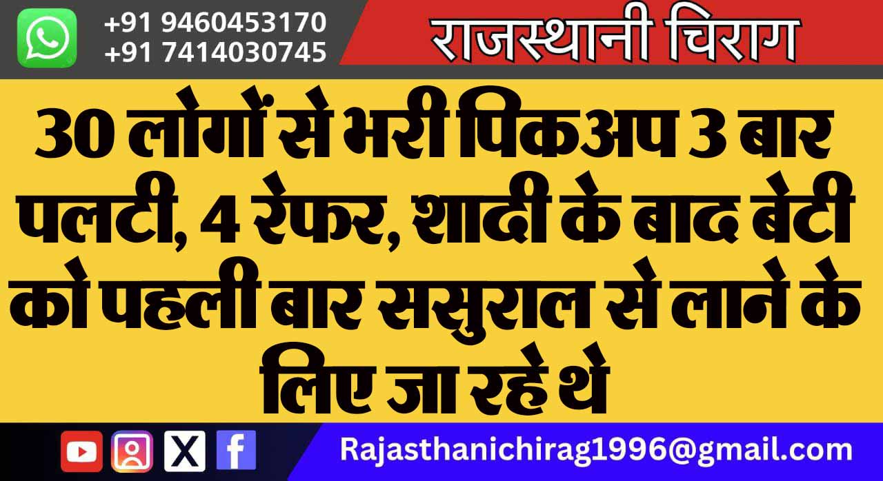 30 लोगों से भरी पिकअप 3 बार पलटी, 4 रेफर, शादी के बाद बेटी को पहली बार ससुराल से लाने के लिए जा रहे थे