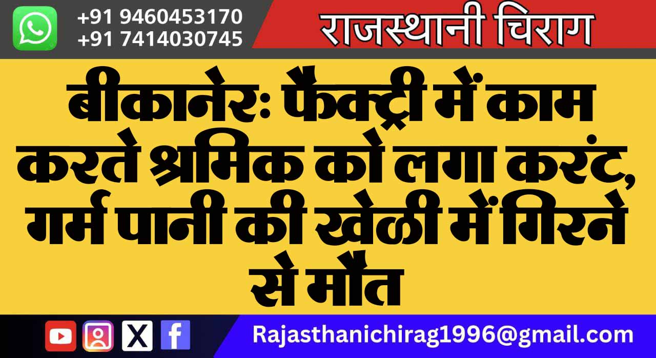 बीकानेर: फैक्ट्री में काम करते श्रमिक को लगा करंट, गर्म पानी की खेळी में गिरने से मौत