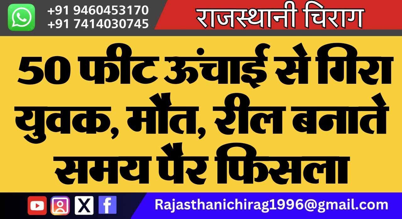 50 फीट ऊंचाई से गिरा युवक, मौत, रील बनाते समय पैर फिसला