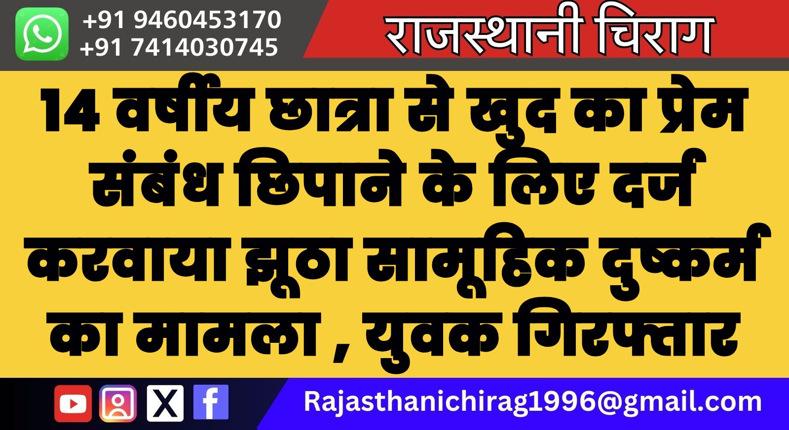 14 वर्षीय छात्रा से खुद का प्रेम संबंध छिपाने के लिए दर्ज करवाया झूठा सामूहिक दुष्कर्म का मामला , युवक गिरफ्तार