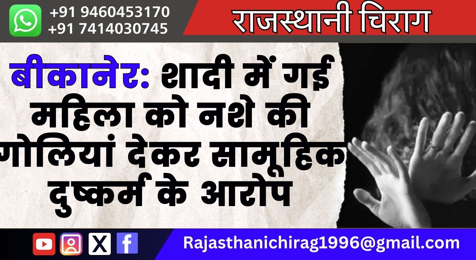 बीकानेर: शादी में गई महिला को नशे की गोलियां देकर सामूहिक दुष्कर्म के आरोप