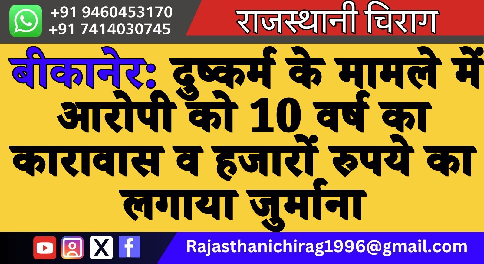 बीकानेर: दुष्कर्म के मामले में आरोपी को 10 वर्ष का कारावास व हजारों रुपये का लगाया जुर्माना
