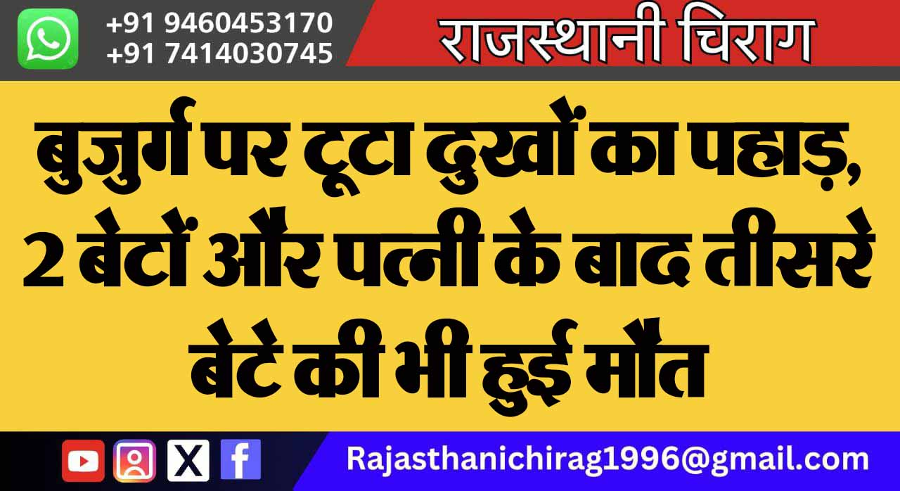 बुजुर्ग पर टूटा दुखों का पहाड़, 2 बेटों और पत्नी के बाद तीसरे बेटे की भी हुई मौत