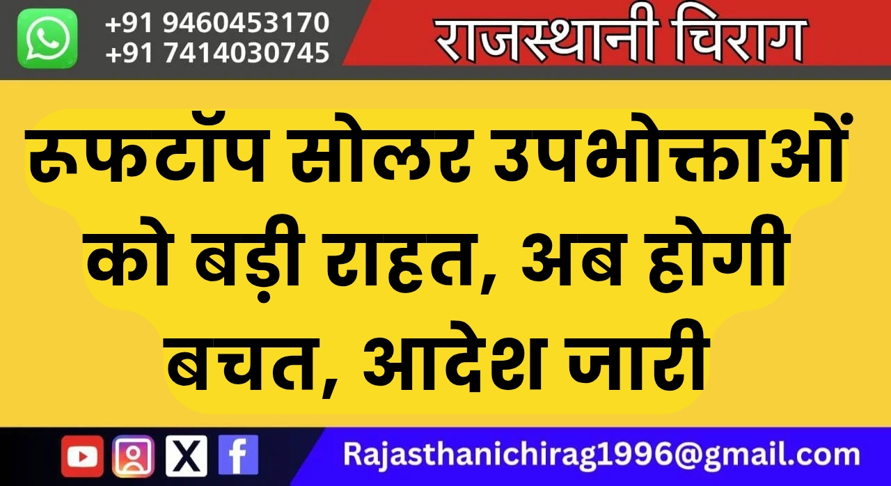 रूफटॉप सोलर उपभोक्ताओं को बड़ी राहत, अब होगी बचत, आदेश जारी