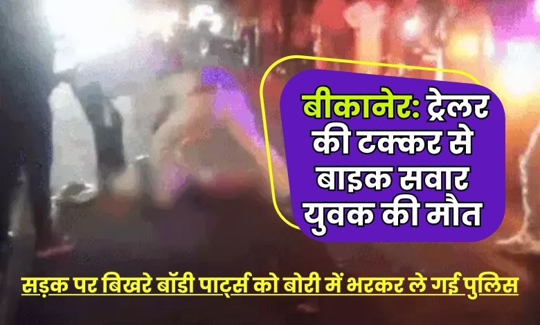 बीकानेर: ट्रेलर की टक्कर से बाइक सवार युवक की मौत, सड़क पर बिखरे बॉडी पाट्‌र्स को बोरी में भरकर ले गई पुलिस
