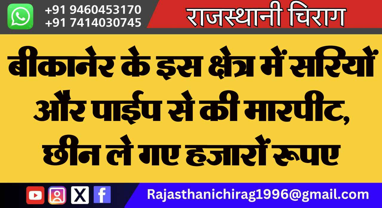 बीकानेर के इस क्षेत्र में सरियों और पाईप से की मारपीट, छीन ले गए हजारों रूपए