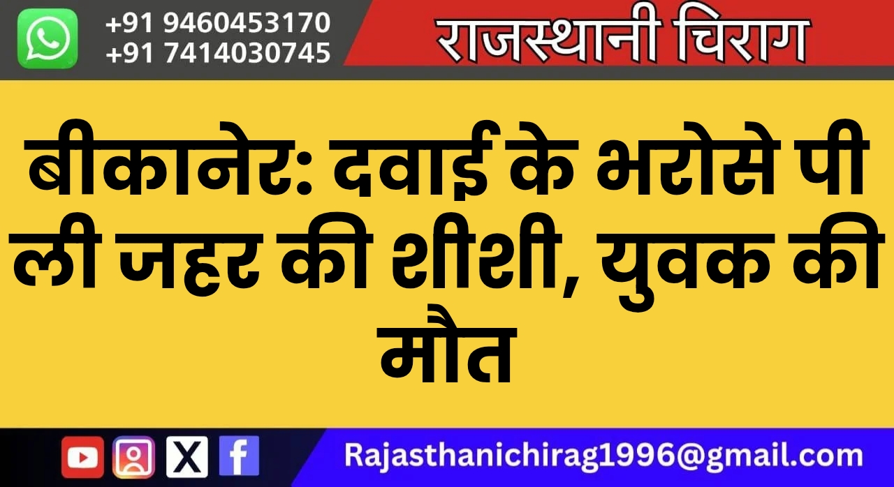 बीकानेर: दवाई के भरोसे पी ली जहर की शीशी, युवक की मौत