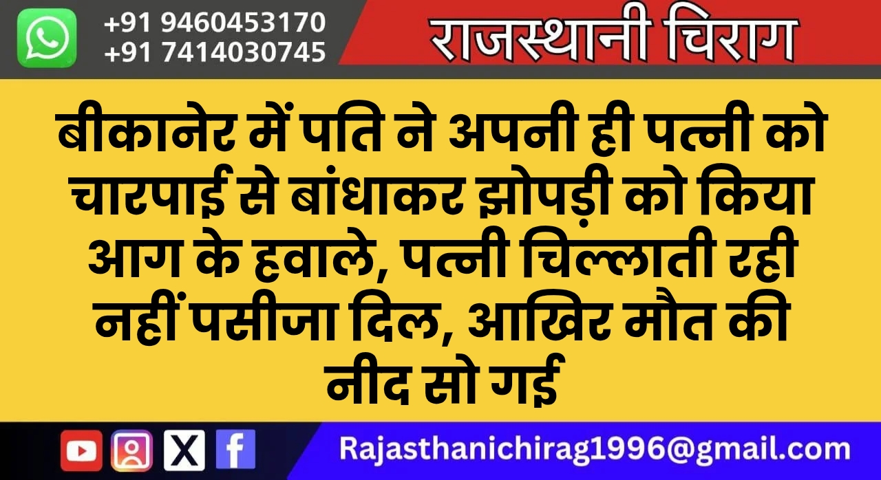 बीकानेर में पति ने अपनी ही पत्नी को चारपाई से बांधाकर झोपड़ी को किया आग के हवाले, पत्नी चिल्लाती रही नहीं पसीजा दिल, आखिर मौत की नीद सो गई