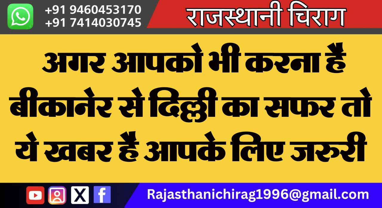 अगर आपको भी करना है बीकानेर से दिल्ली का सफर तो ये खबर है आपके लिए जरुरी