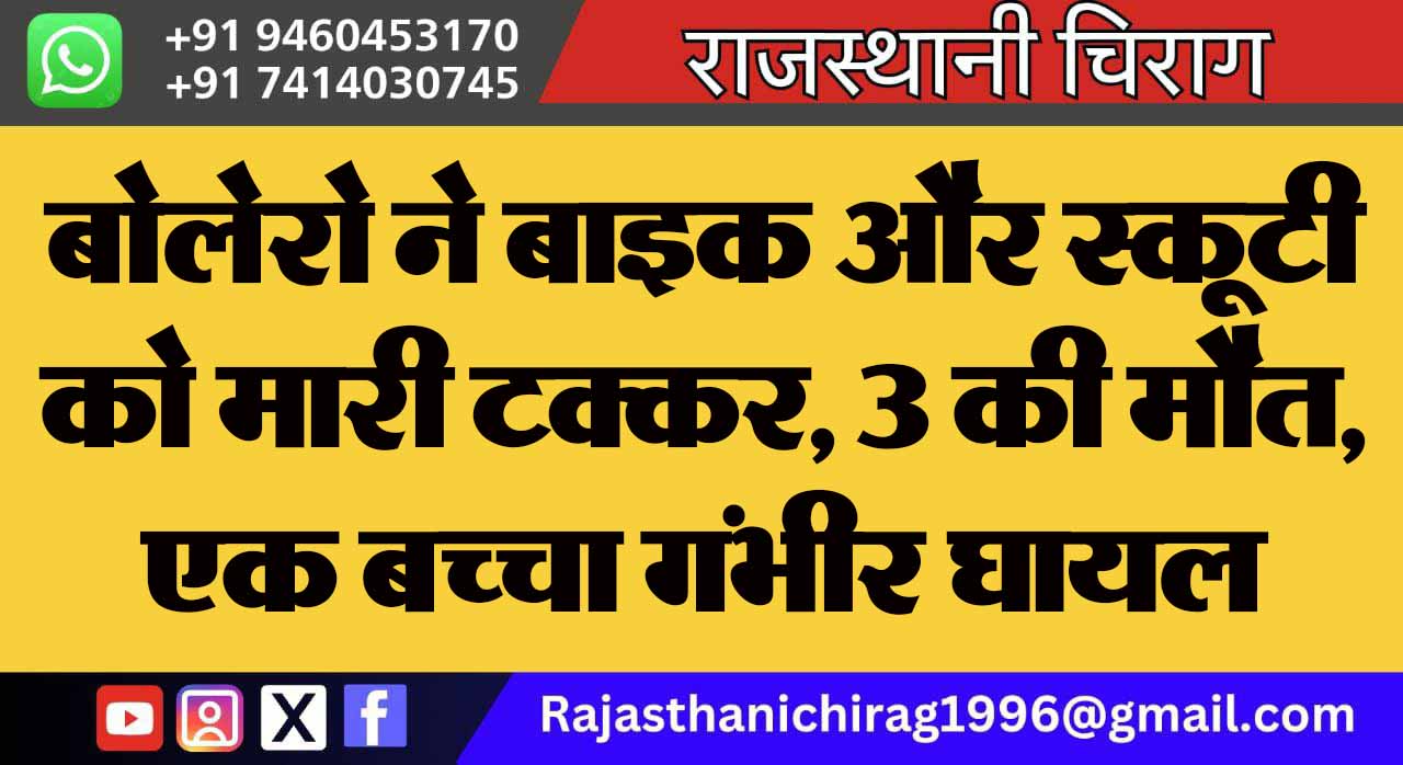 बोलेरो ने बाइक और स्कूटी को मारी टक्कर, 3 की मौत, एक बच्चा गंभीर घायल