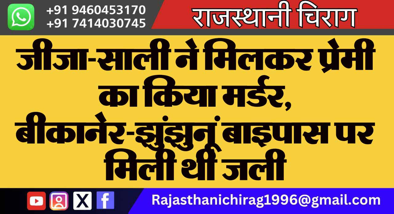 जीजा-साली ने मिलकर प्रेमी का किया मर्डर, बीकानेर-झुंझुनूं बाइपास पर मिली थी जली हुई लाश