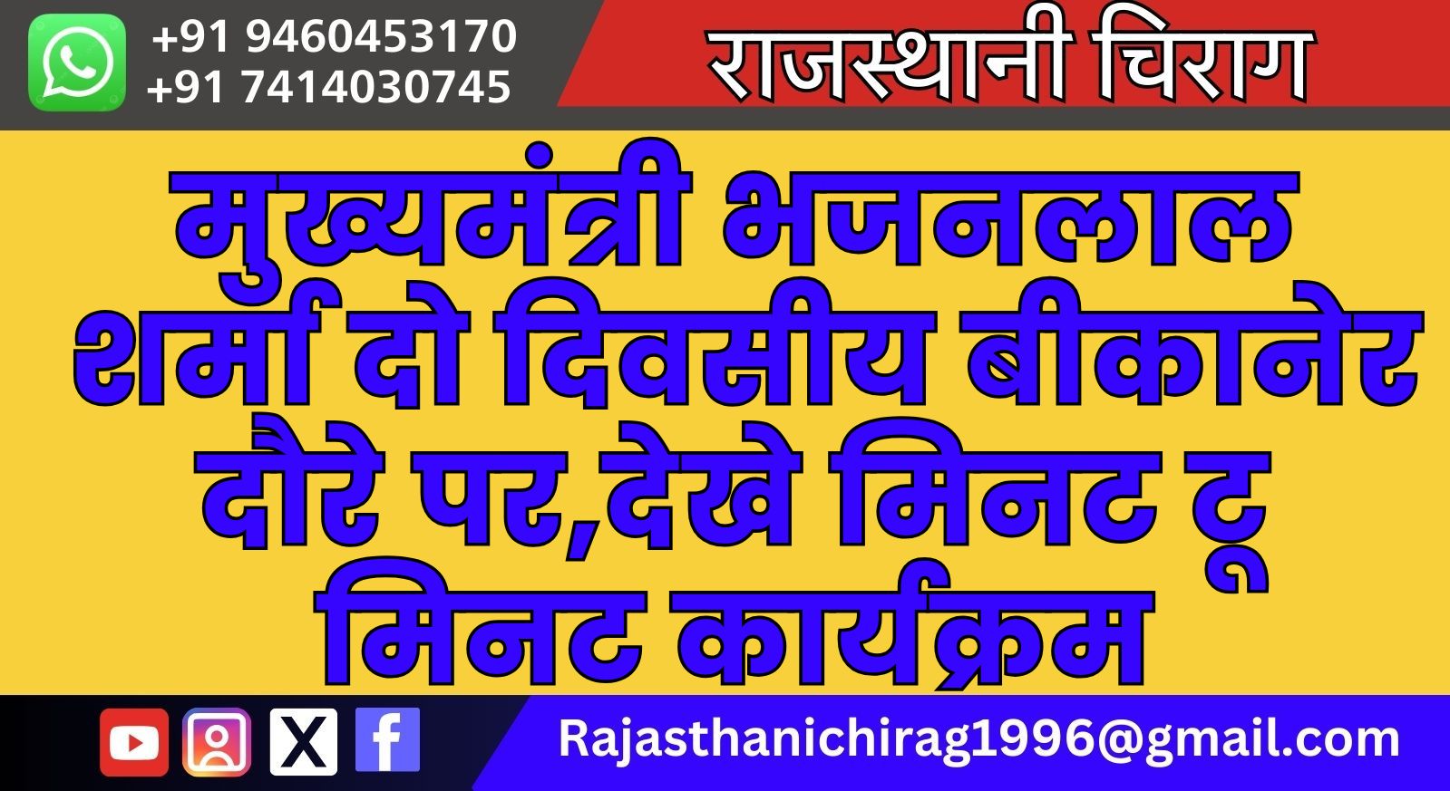 मुख्यमंत्री भजनलाल शर्मा दो दिवसीय बीकानेर दौरे पर,देखे मिनट टू मिनट कार्यक्रम
