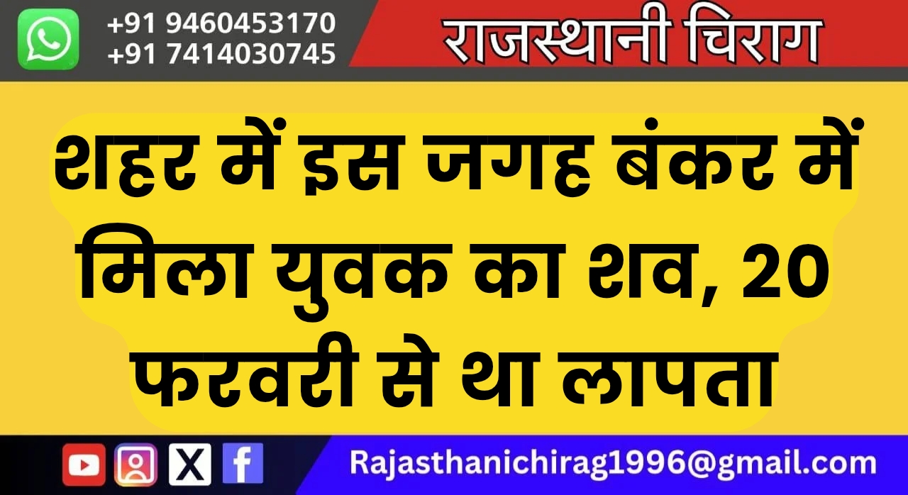 शहर में इस जगह बंकर में मिला युवक का शव, 20 फरवरी से था लापता