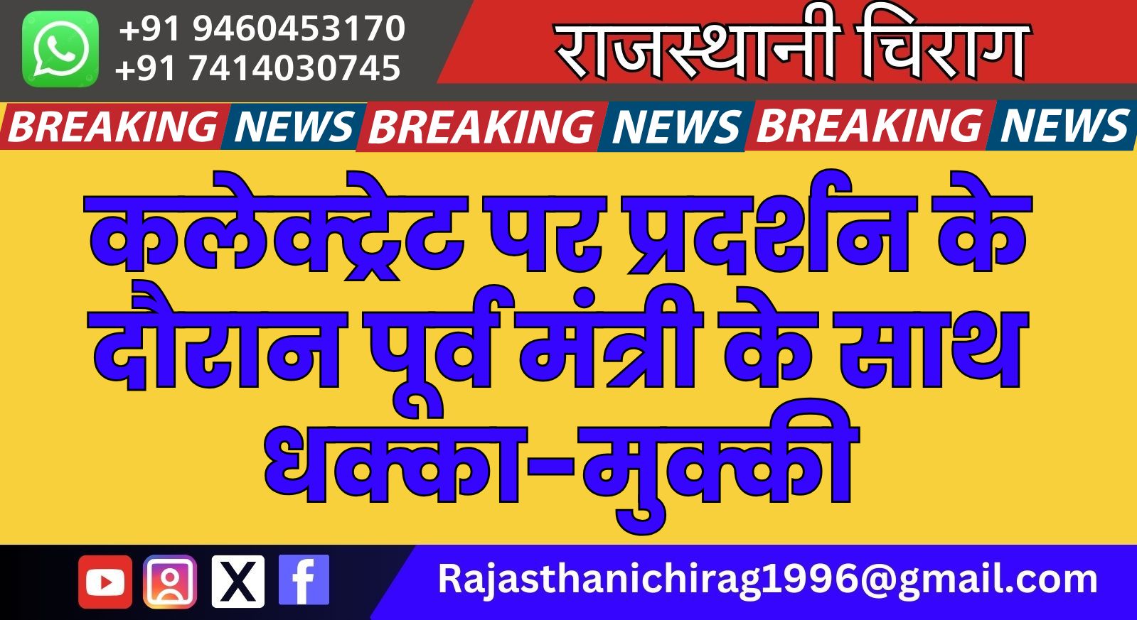 कलेक्ट्रेट पर प्रदर्शन के दौरान पूर्व मंत्री के साथ धक्का-मुक्की