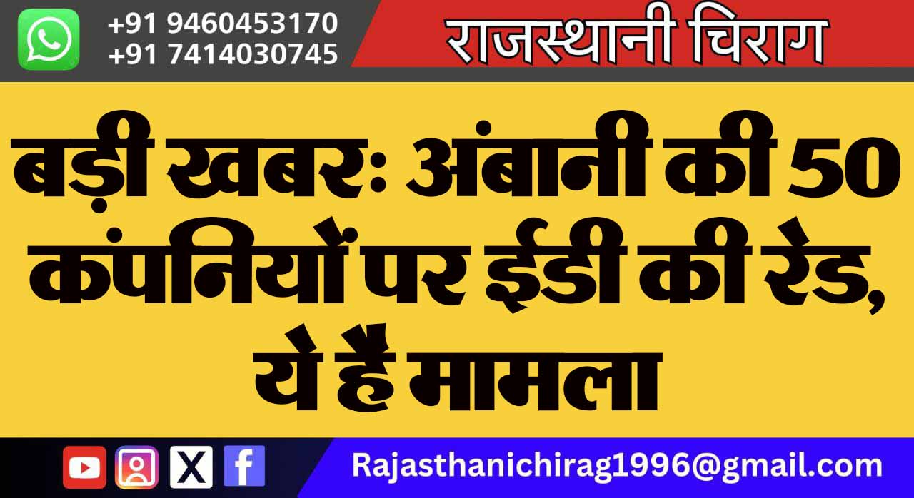 बड़ी खबर: अंबानी की 50 कंपनियों पर ईडी की रेड, ये है मामला