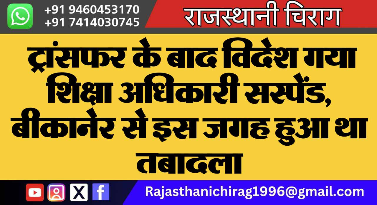 ट्रांसफर के बाद विदेश गया शिक्षा अधिकारी सस्पेंड, बीकानेर से इस जगह हुआ था तबादला