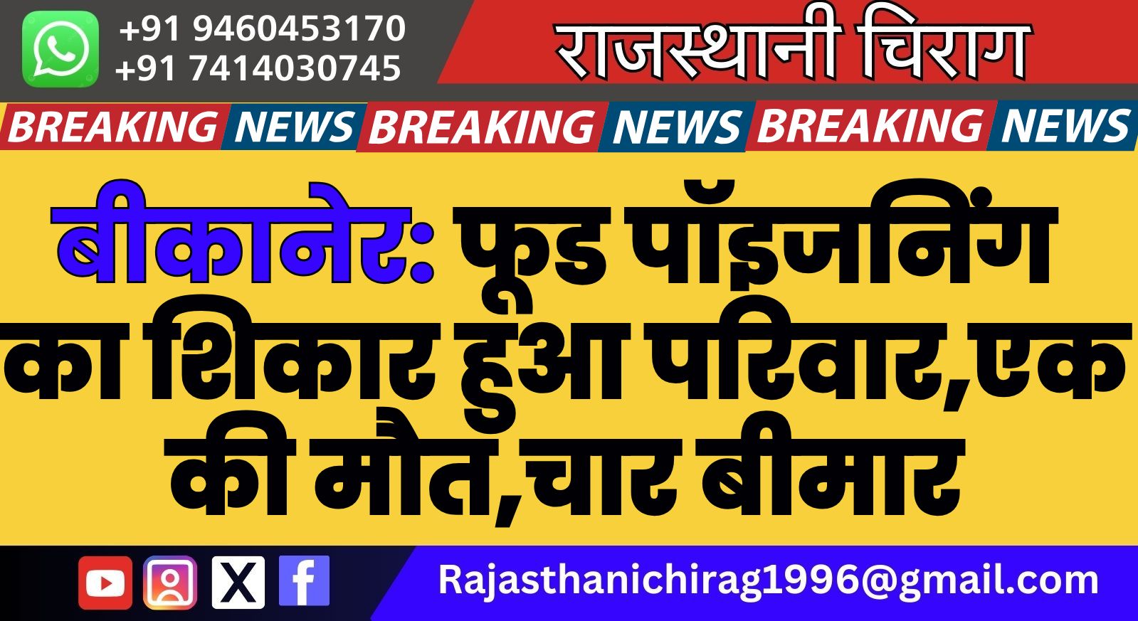 बीकानेर:फूड पॉइजनिंग का शिकार हुआ परिवार,एक की मौत,चार बीमार