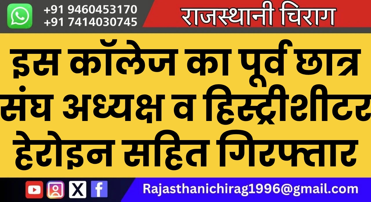 इस कॉलेज का पूर्व छात्र संघ अध्यक्ष व हिस्ट्रीशीटर हेरोइन सहित गिरफ्तार