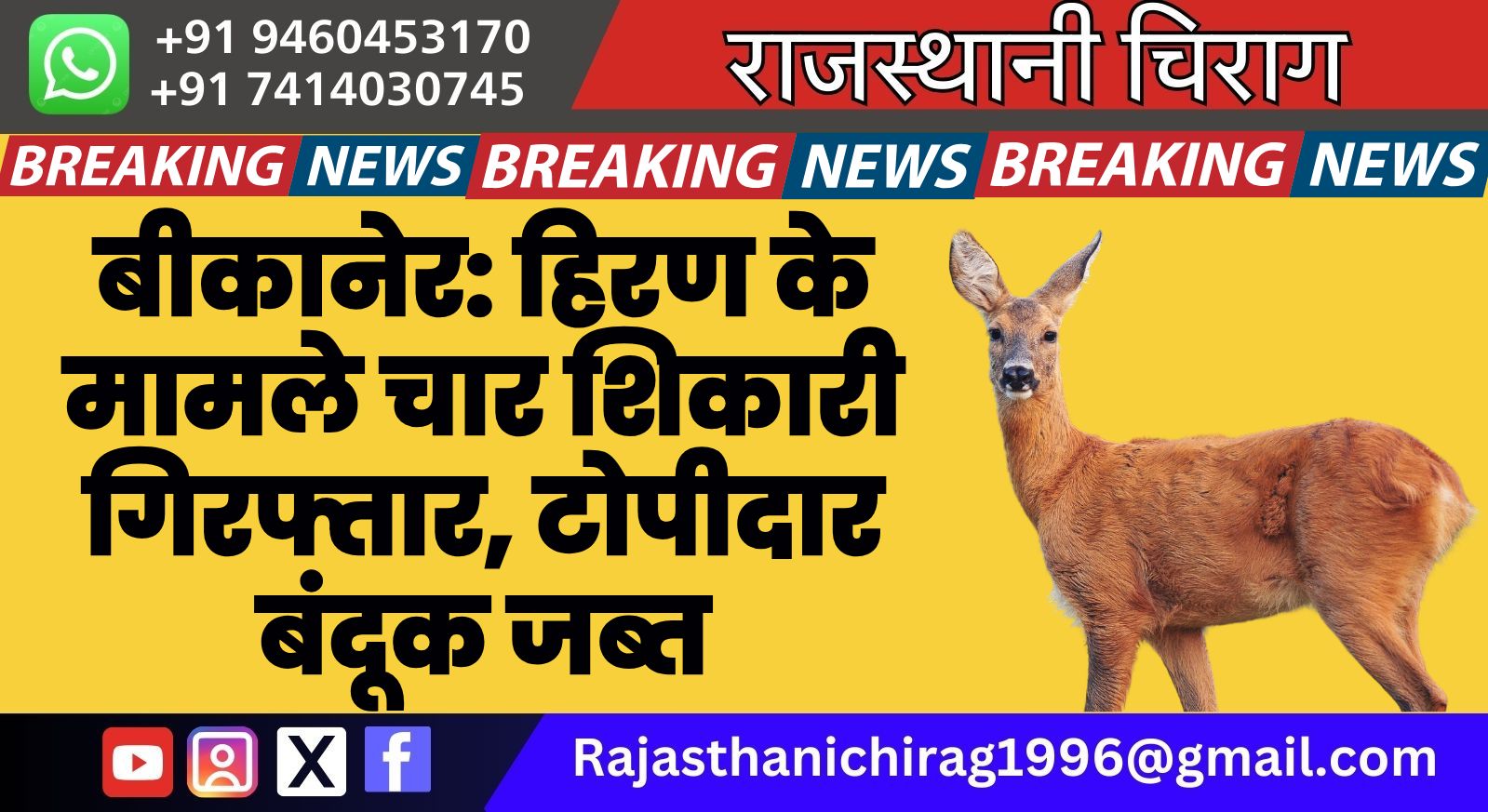 बीकानेर: हिरण के मामले चार शिकारी गिरफ्तार, टोपीदार बंदूक जब्त
