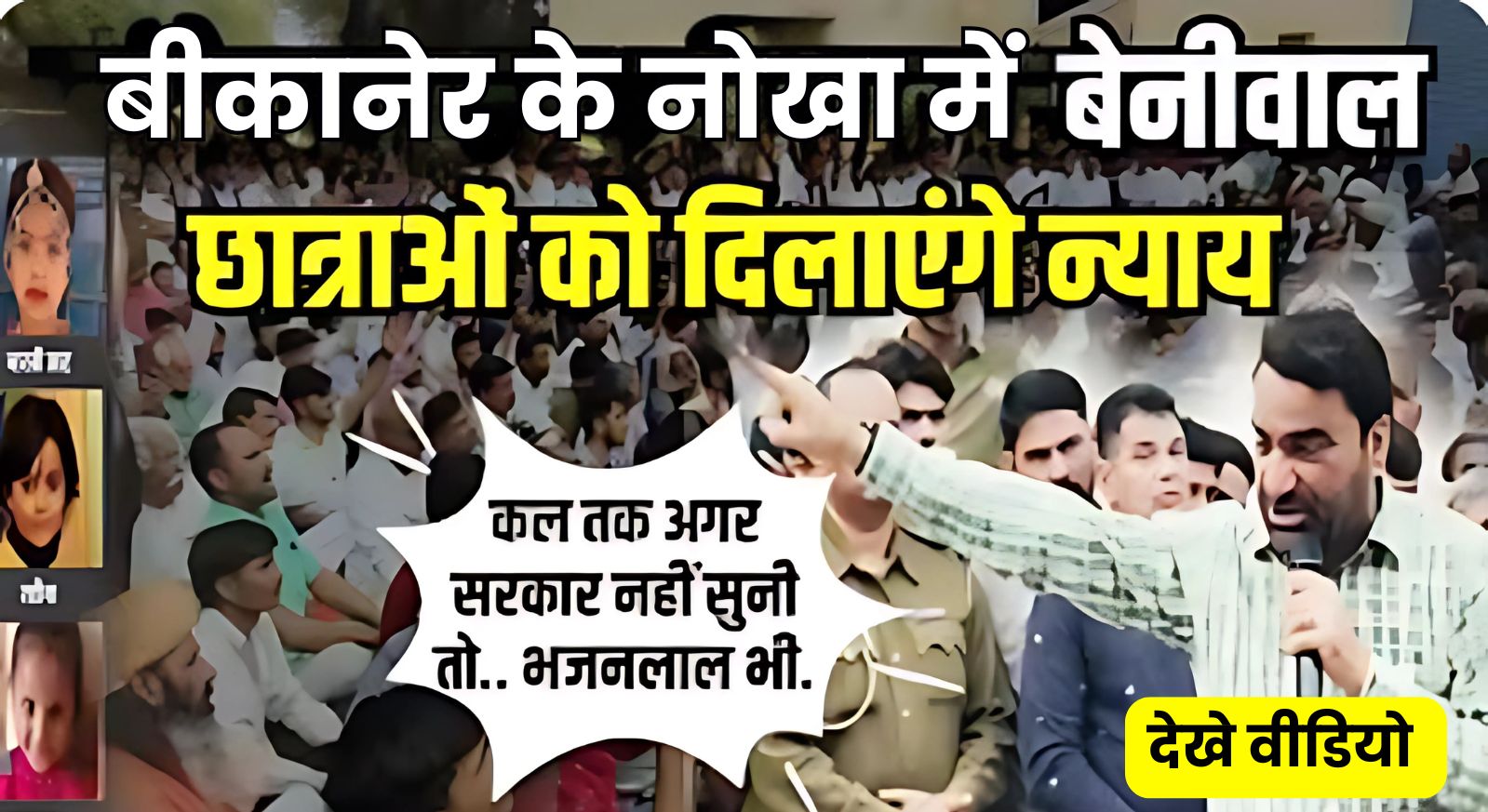 बीकानेर के नोखा में छात्रों के न्याय के लिए हुई हनुमान बेनीवाल की एंट्री, देखे वीडियो