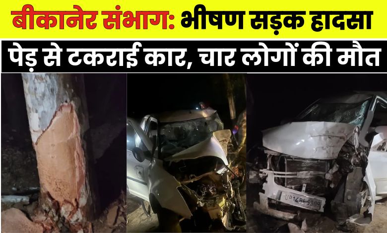 बीकानेर संभाग: भीषण सड़क हादसा, पेड़ से टकराई कार, चार लोगों की मौत