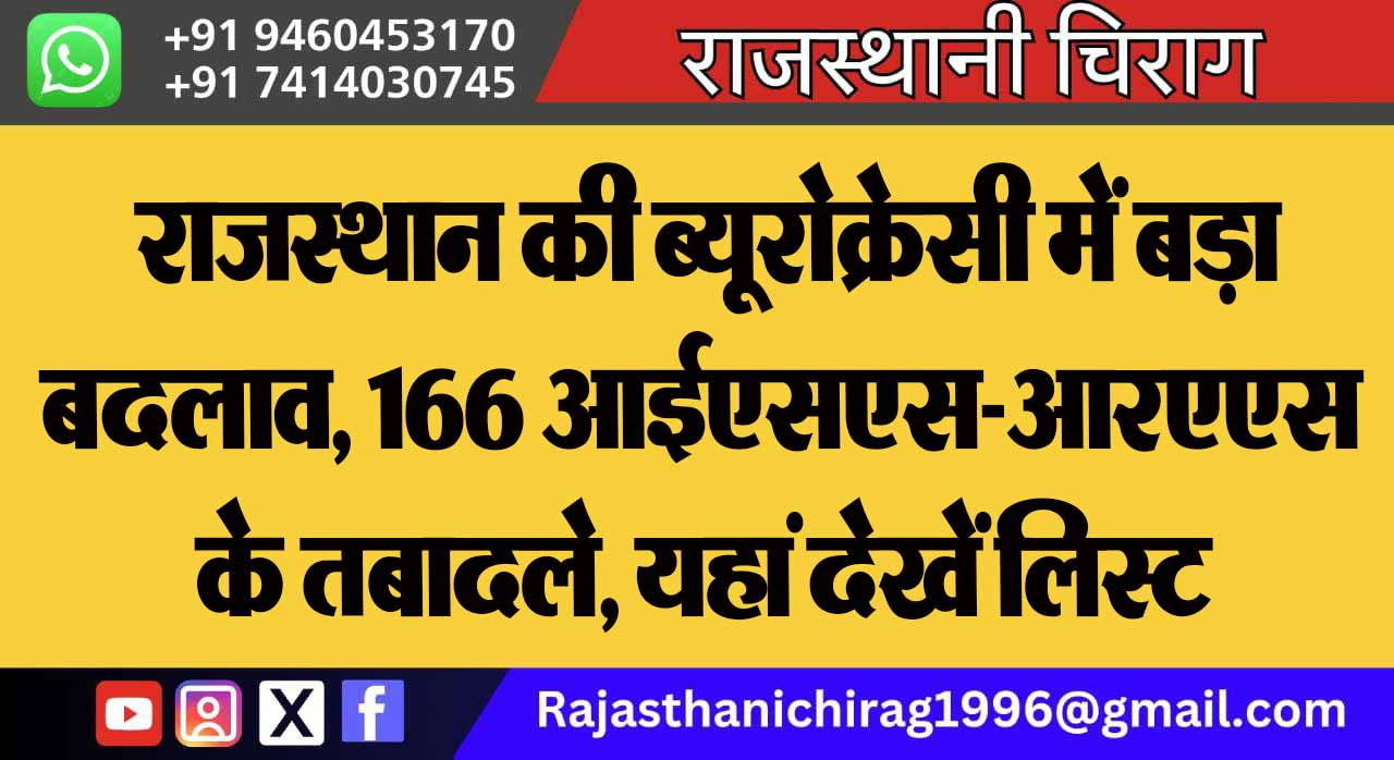 राजस्थान की ब्यूरोक्रेसी में बड़ा बदलाव, 166 आईएसएस-आरएएस के तबादले, यहां देखें लिस्ट