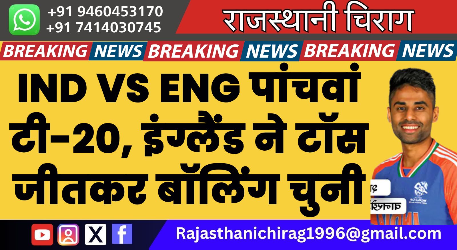 IND vs ENG पांचवां टी-20,इंग्लैंड ने टॉस जीतकर बॉलिंग चुनी