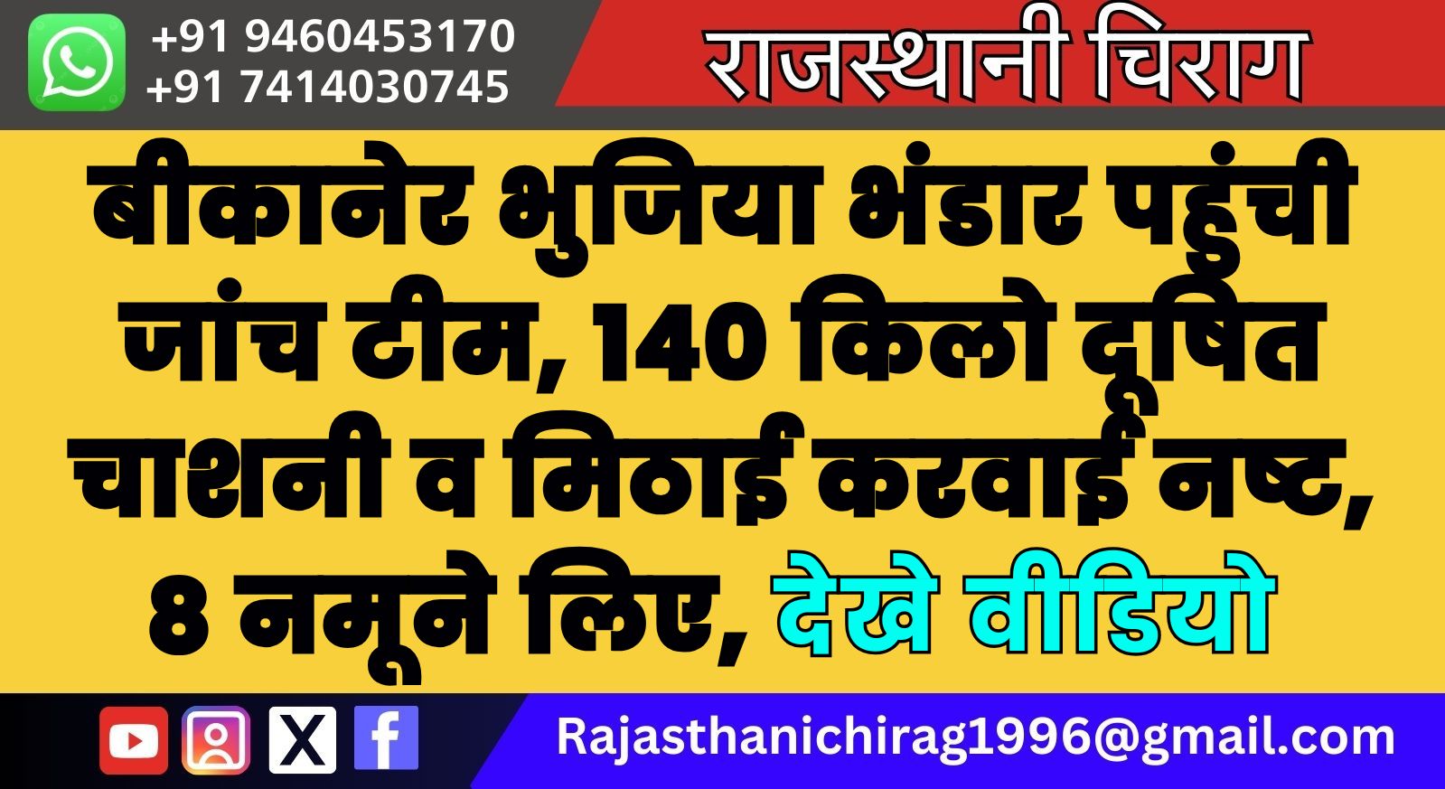 बीकानेर भुजिया भंडार पहुंची जांच टीम, 140 किलो दूषित चाशनी व मिठाई करवाई नष्ट, 8 नमूने लिए