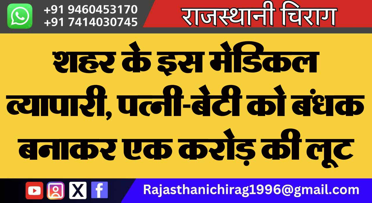 शहर के इस मेडिकल व्यापारी, पत्नी-बेटी को बंधक बनाकर एक करोड़ की लूट