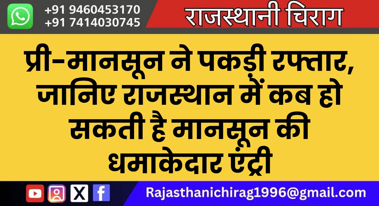 प्री-मानसून ने पकड़ी रफ्तार, जानिए राजस्थान में कब हो सकती है मानसून की धमाकेदार एंट्री
