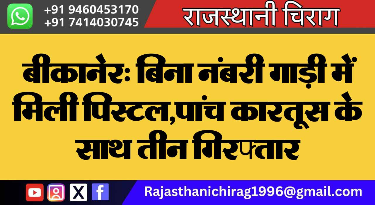 बीकानेर: बिना नंबरी गाड़ी में मिली पिस्टल,पांच कारतूस के साथ तीन गिरफ्तार