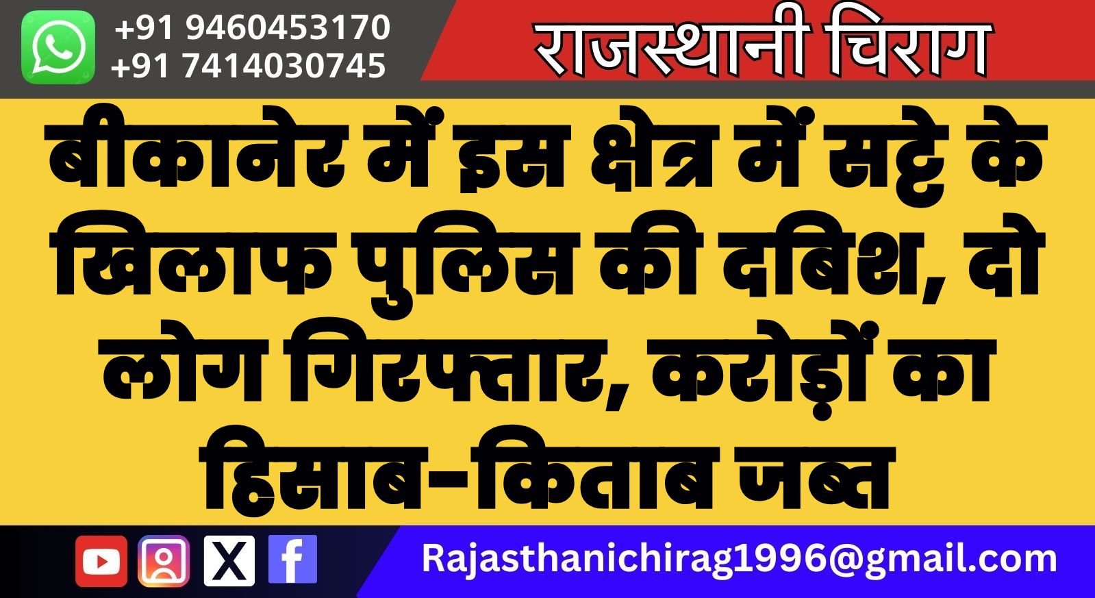 बीकानेर में इस क्षेत्र में सट्टे के खिलाफ पुलिस की दबिश, दो लोग गिरफ्तार, करोड़ों का हिसाब-किताब जब्त