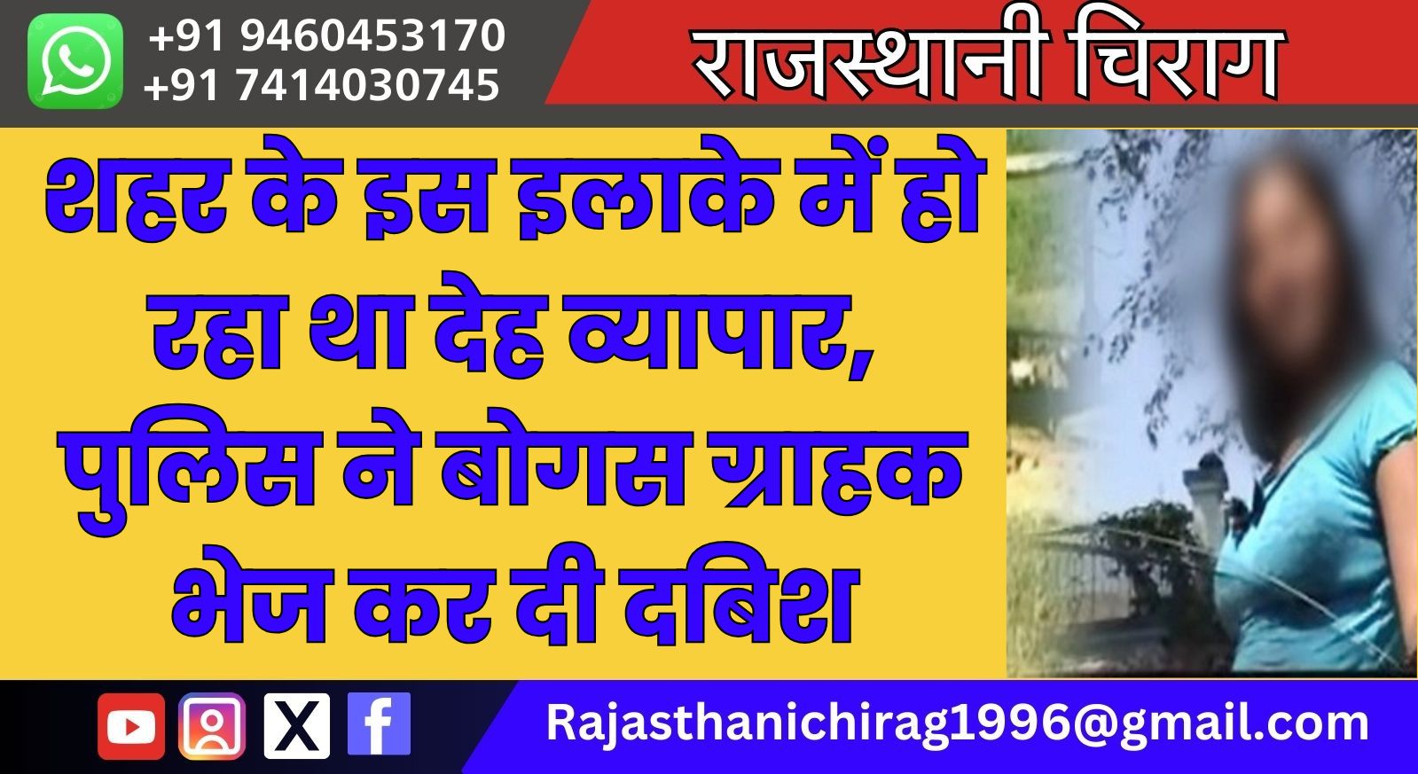 शहर के इस इलाके में हो रहा था देह व्यापार, पुलिस ने बोगस ग्राहक भेज कर दी दबिश