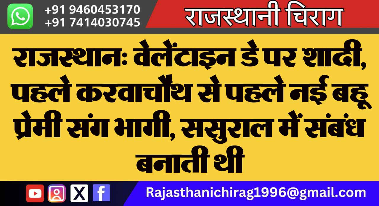 राजस्थान: वेलेंटाइन डे पर शादी, पहले करवाचौथ से पहले नई बहू प्रेमी संग भागी, ससुराल में संबंध बनाती थी