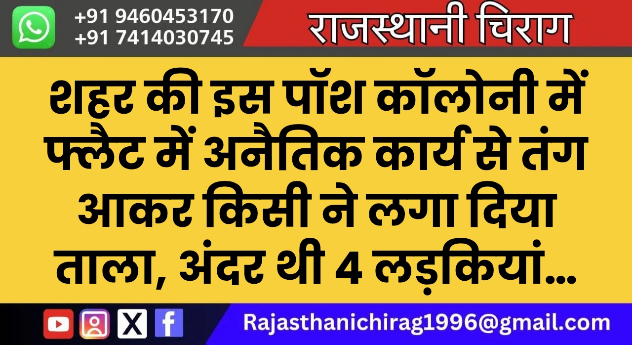 शहर की इस पॉश कॉलोनी में फ्लैट में अनैतिक कार्य से तंग आकर किसी ने लगा दिया ताला, अंदर थी 4 लड़कियां…