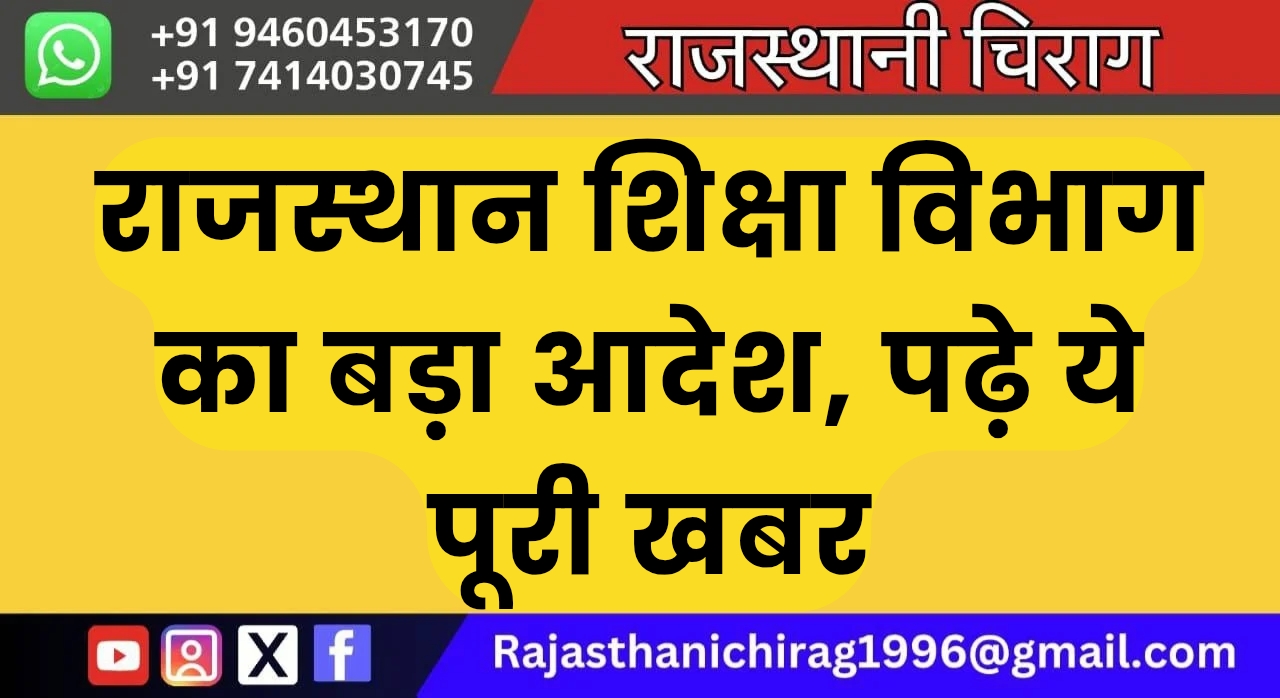 राजस्थान शिक्षा विभाग का बड़ा आदेश, पढ़े ये पूरी खबर