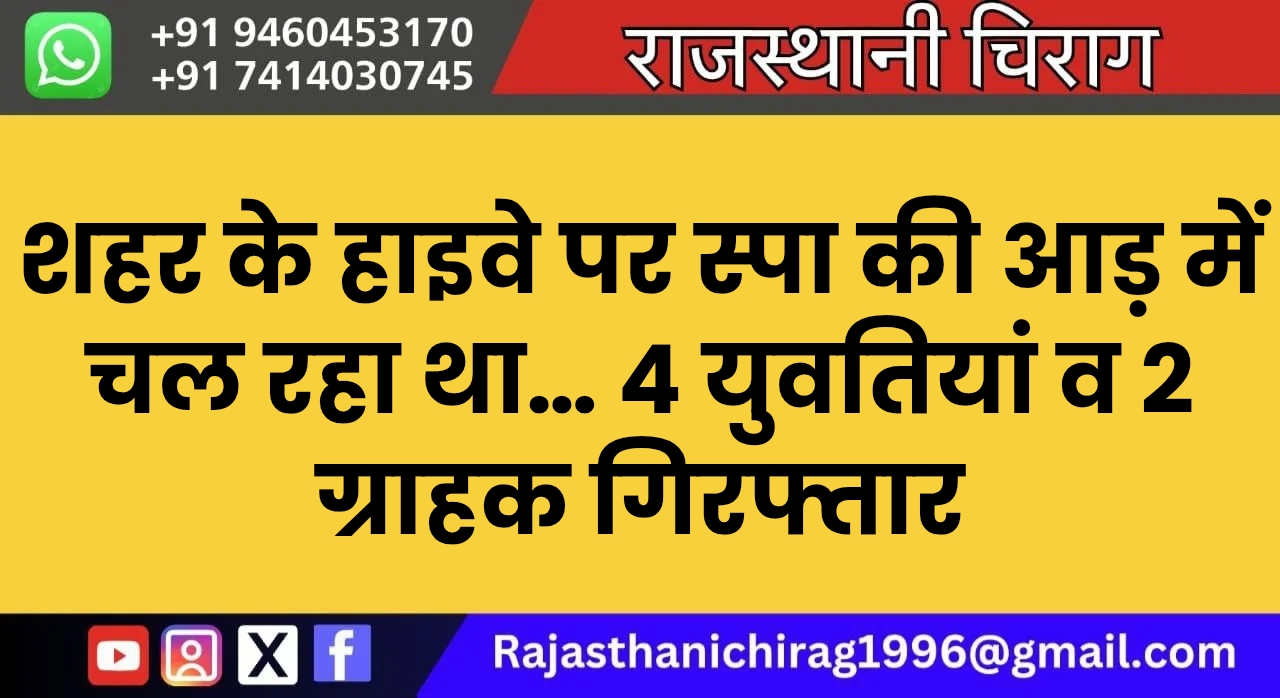 शहर के हाइवे पर स्पा की आड़ में चल रहा था… 4 युवतियां व 2 ग्राहक गिरफ्तार