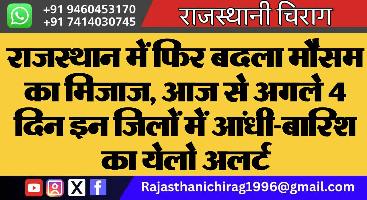 राजस्थान में फिर बदला मौसम का मिजाज, आज से अगले 4 दिन इन जिलों में आंधी-बारिश का येलो अलर्ट