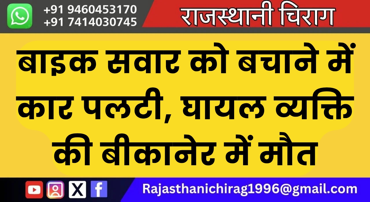बाइक सवार को बचाने में कार पलटी, घायल व्यक्ति की बीकानेर में मौत