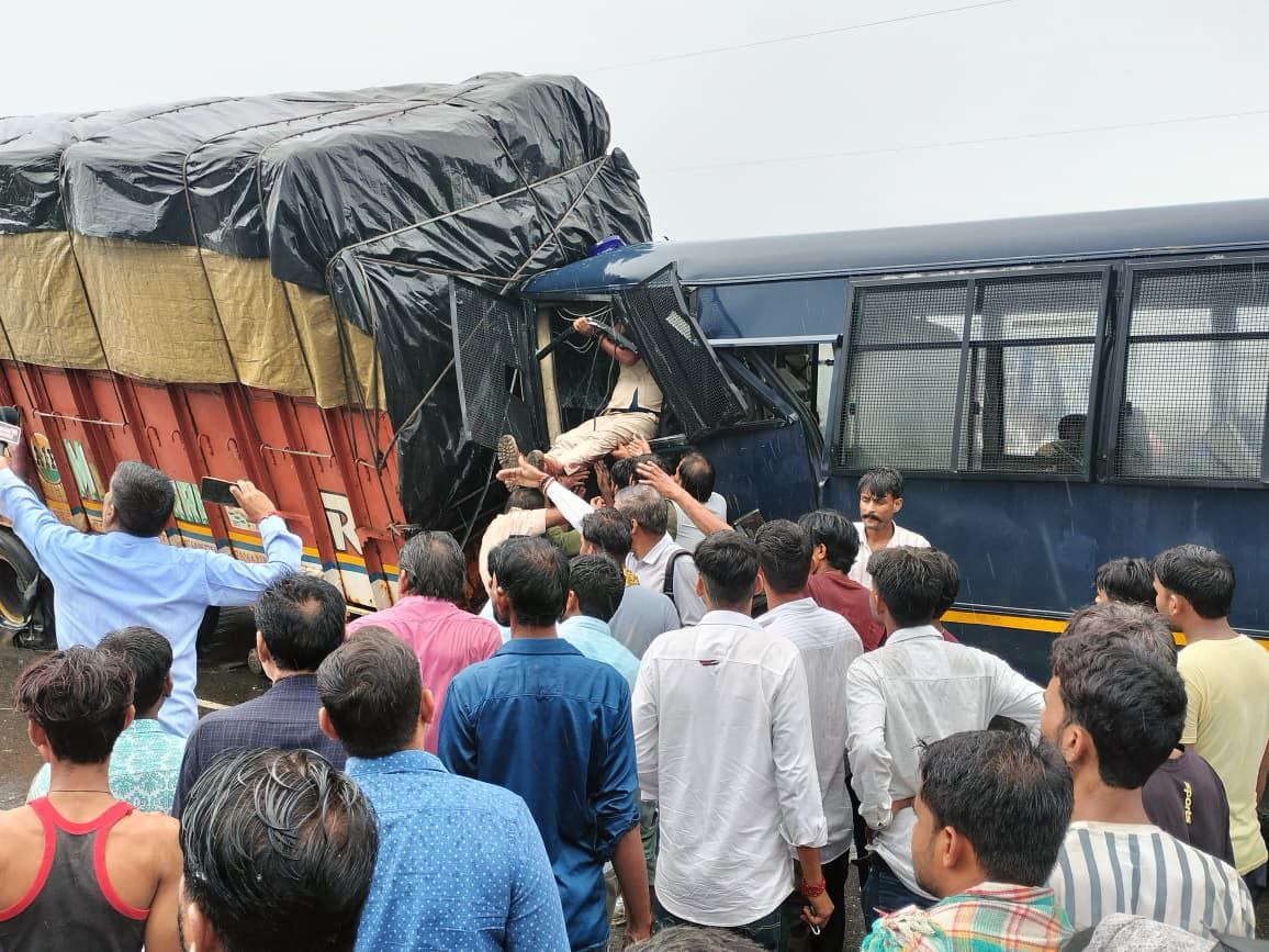 ब्रेकिंग: हार्डकोर अपराधी को ले जा रही पुलिस बस और ट्रक की भिड़ंत, कई पुलिसकर्मी जख्मी