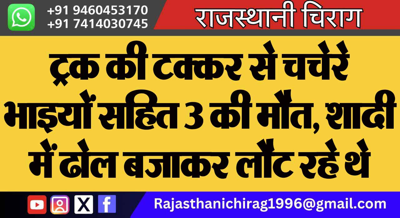 ट्रक की टक्कर से चचेरे भाइयों सहित 3 की मौत, शादी में ढोल बजाकर लौट रहे थे